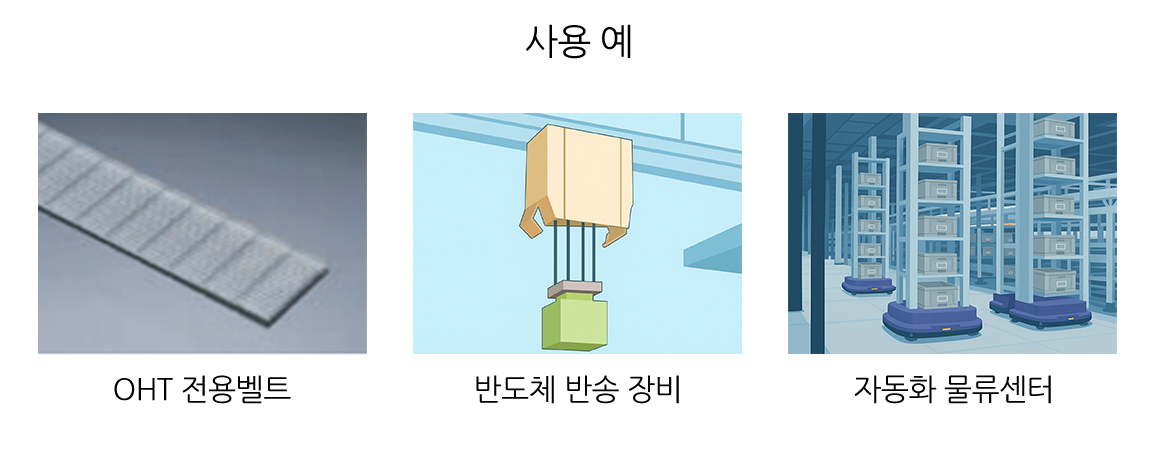 - OHT장비 특성 상 사용되는 벨트는 두께편차가 최소화 된 정밀가공벨트가 필요합니다.